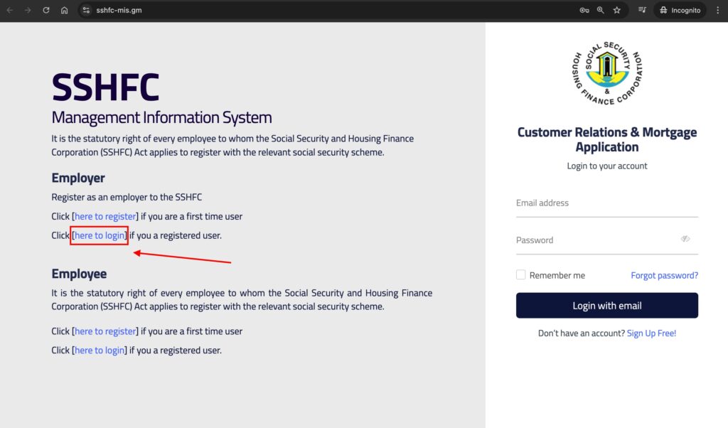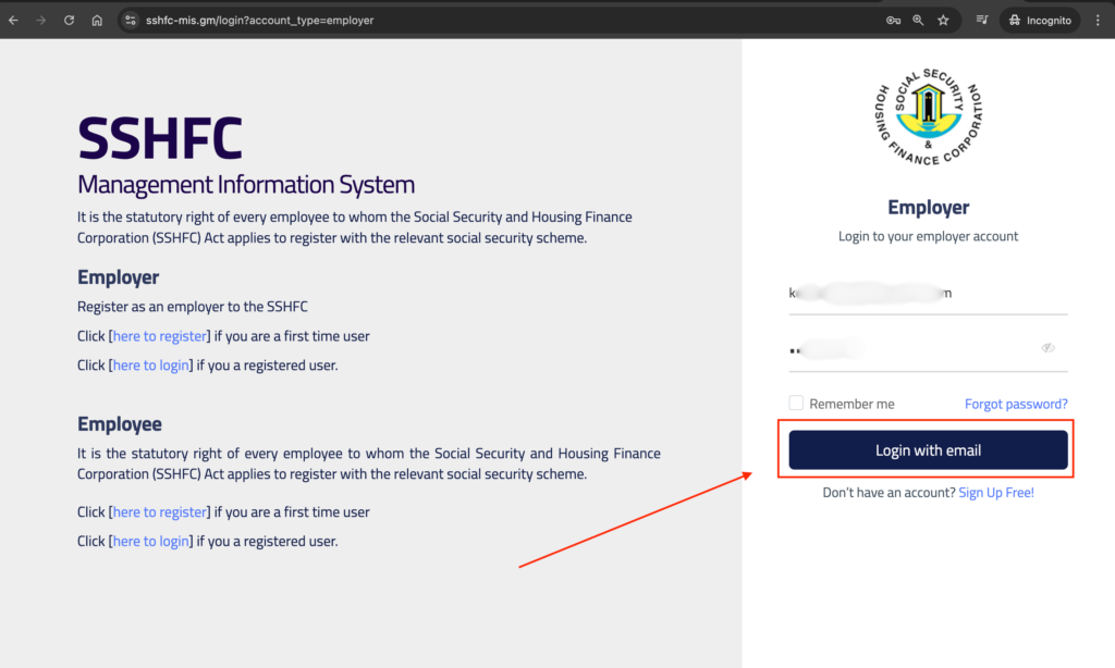 5. How to Log in to the SSHFC Portal as an employer