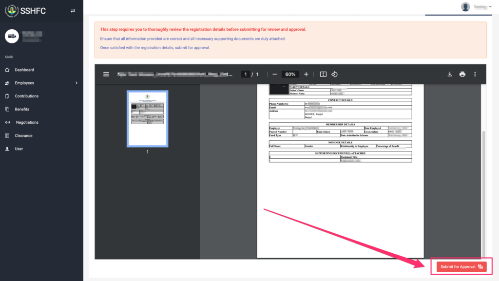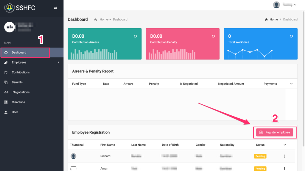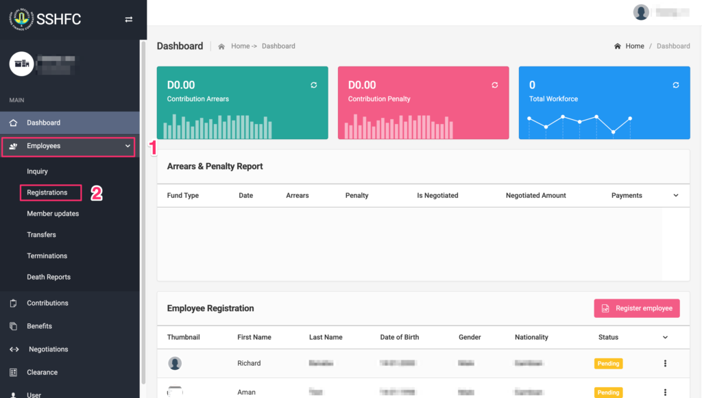To register an employee, you can submit their details directly through the SSHFC portal after logging in successfully. There are two (2) options available for submitting the employee registration.