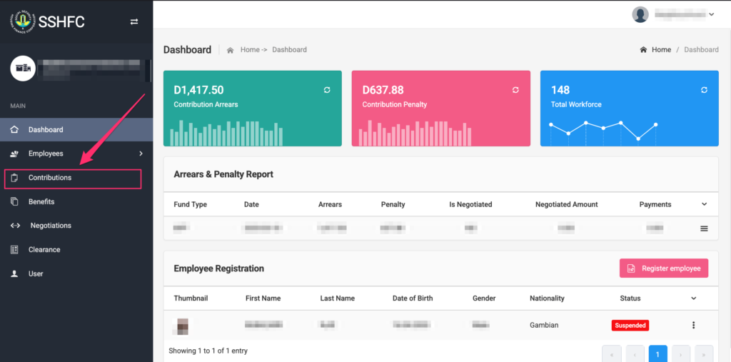 From the left-hand panel, click on “Contribution” to access contribution-related features.