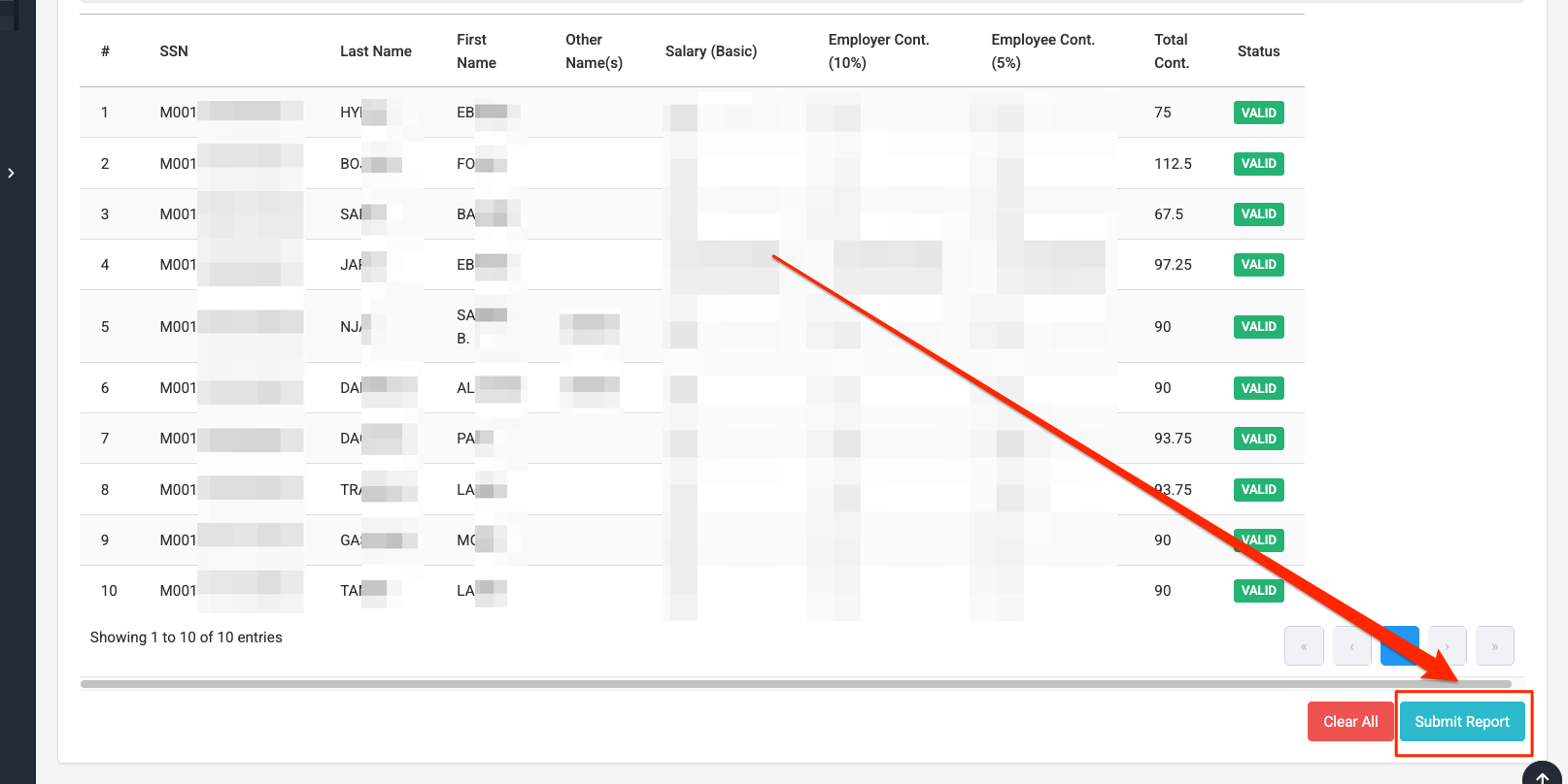 If everything is correct, the system will show “VALID” status for all employees. The Number of Employees Remaining and Total Contribution Remaining will both be 0.00.