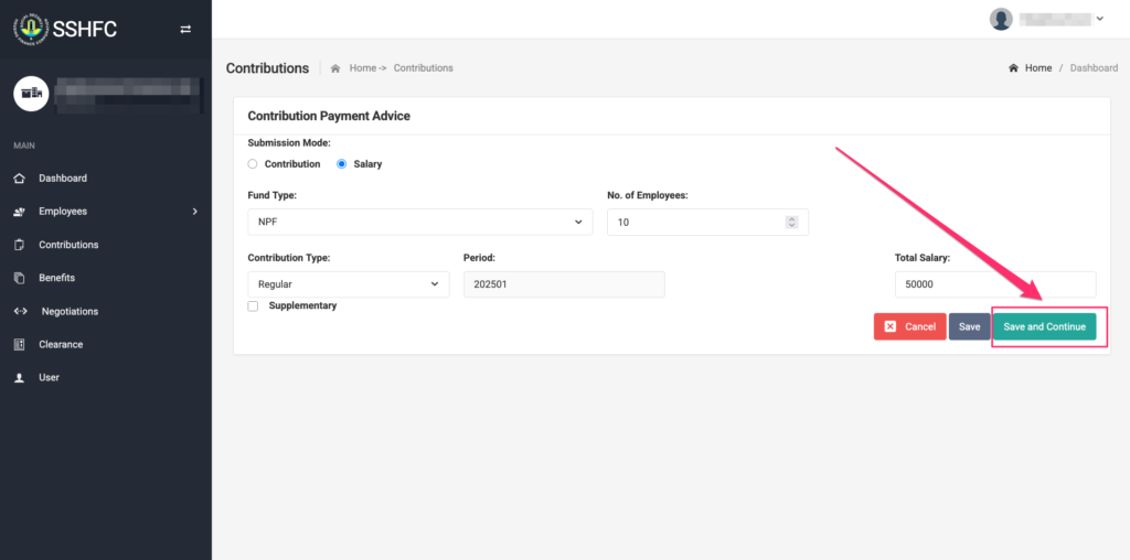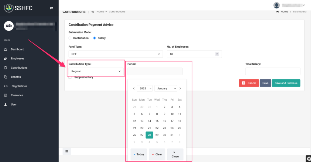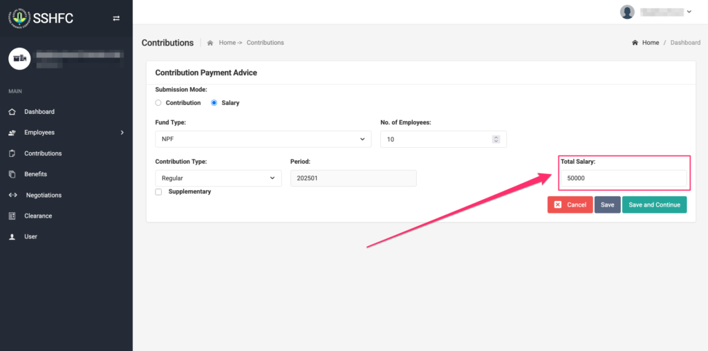 - Select “Salary” if you want the system to automatically calculate contributions based on employee salaries.